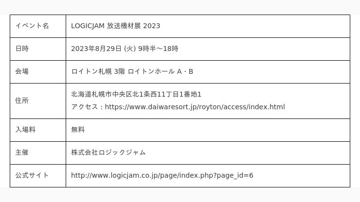 株式会社アスク (本社:東京都千代田区) は、2023年8月29日 (火) にロイトン札幌 3階 ロイトンホールにて開催される『LOGICJAM 放送機材展 2023』に出展します。