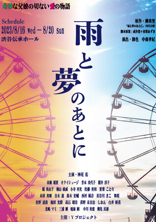 Yプロジェクト主催、『雨と夢のあとに』が2023年8月16日 (水) 〜2023年8月20日 (日)に渋谷区文化総合センター大和田 伝承ホール(東京都渋谷区桜丘町23-21)にて上演されます。この度、ビジュアルが解禁されました。 チケットはカンフェティ(運営:ロングランプランニング株式会社、東京都新宿区、代表取締役:榑松 大剛)にて発売中です。