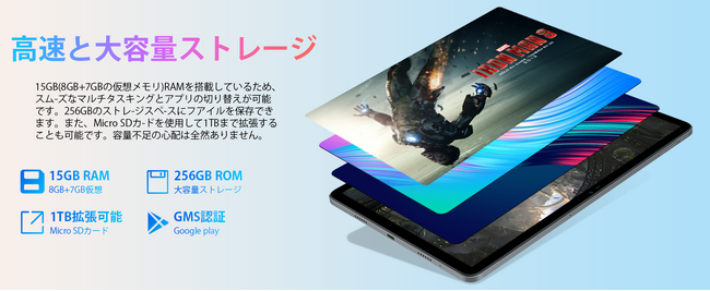 DOOGEE T20 10インチandroid タブレットは、最大8GBのメモリ+最大7GBの拡張可能な仮想メモリ、合計15GBの融合メモリを搭載しています。これにより、タブレットは複数のアプリケーションを簡単かつスムーズに切り替えることができ、ラグをなくし、高速でスムーズな操作体験を提供します。DOOGEE T20 アンドロイド タブレットには256GBの大容量ストレージも搭載されているため、メモリ不足を心配する必要はもうありません。 大容量の1TBまでのmicroSDカードでストレージ容量をさらに拡張できます。(FAT32、exFATフォーマットカードは別売り)