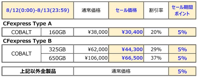 〜CFexpress Type A 160GB, Type B 325GB/650GBカードセールも同時に実施〜