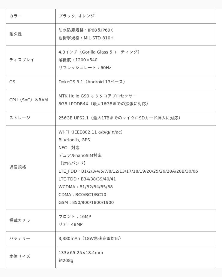 さらに、4-in-1ナビゲーションシステム採用、デュアルnanoSIM対応、NFCサポート、指紋認証と顔認証にも対応しており、ユーザーの生活をより便利にするミニタフネススマホとなっています。