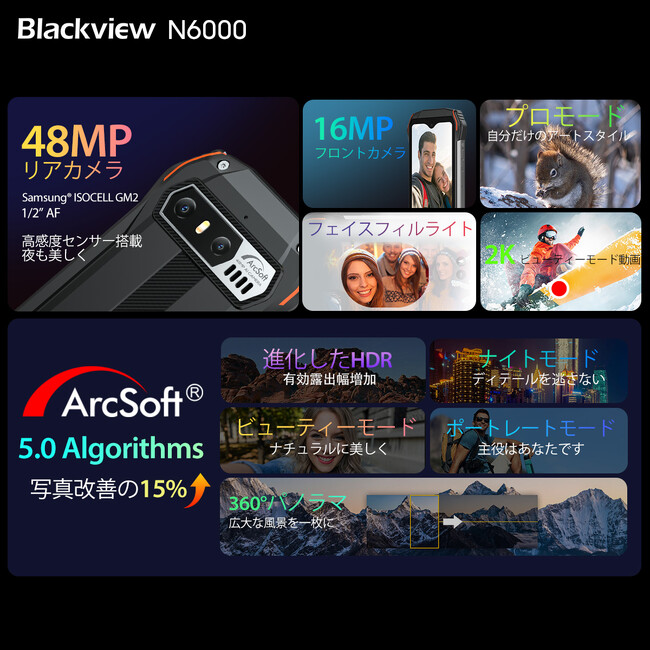 N6000は他にもプロモードや美顔モード付きの2Kビデオ録画などの機能を組み込んでおり、ユーザーが忘れられない瞬間を逃さないよう、驚くべき写真撮影能力を実現しています。