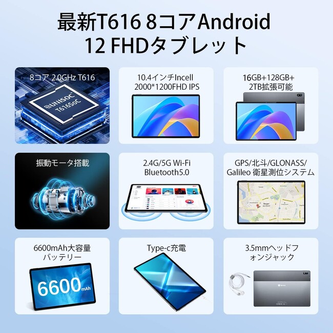 デュアルSIM Android12/T616+8コア CPU/8GB+128GB/10.4インチ/13MP+5MP、お盆休みセール 最低価格はたったの約19,990円!!(ハート) (8月12日 10:05から22:05まで! )