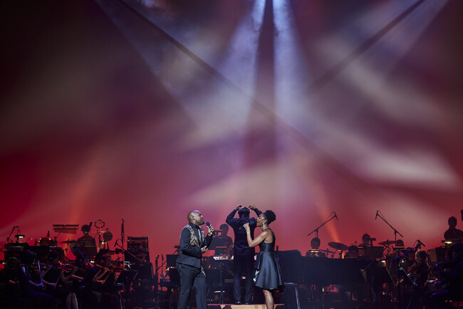 対して、同じ『ライオン・キング』から「Shadowland(シャドウランド)」を歌ったキシー・シモンズ。ナラ役を長く務めるだけあって、最初の一声で観客の心を惹きつけた。単に声量が豊かなだけでなく、ナラという雌ライオンの切なく力強い心情が伝わってくる。コーラスにまわった4人のボリュームを抑えたハーモニーも抜群で、会場をアフリカの草原に一変させた。