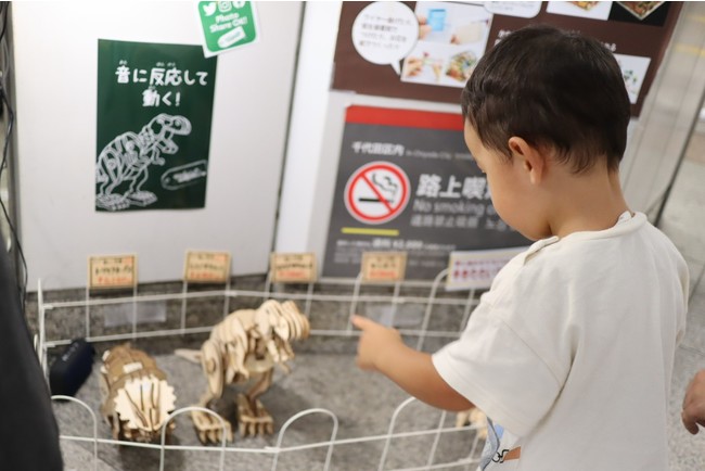 動く恐竜のウッドパズルなど、目で見て楽しい売り場