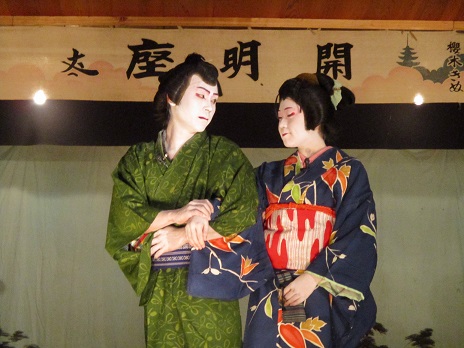 年に一度一夜限りの舞台に向け、2週間ほど前から練習を始めて本番を迎えますが、出演者はプロではなく全員素人。台本にはないアドリブや、時にはハプニング、観ているお客さんからの温かい声援、それらが一体となって、秋の夜の風物詩となっています。地元の若者たちが熱演する懐かしの人情時代劇である「村芝居」を是非ご覧ください。