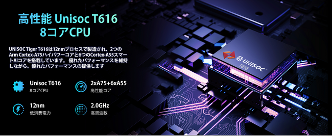 高性能 Unisoc T616 8コアCPU