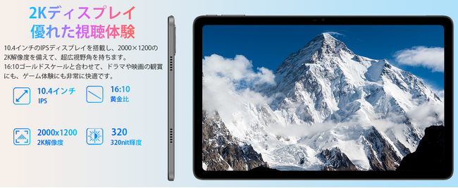15GB RAM(8GB+7GB拡張)+256GB ROM+1TB拡張可能、T616 8コアCPU、10.4インチ 2Kディスプレイ+16MP/8MPカメラ+8300mAh+Hi-Res Audio+TUV ブルーライト認証