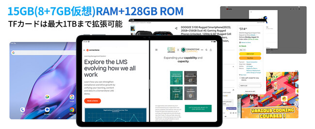 大8GBのメモリ+最大7GBの拡張可能な仮想メモリ、合計15GBの融合メモリを搭載しています。これにより、タブレットは複数のアプリケーションを簡単かつスムーズに切り替えることができ、ラグをなくし、高速でスムーズな操作体験を提供します。DOOGEE T10S アンドロイド タブレットには128GBの大容量ストレージも搭載されているため、メモリ不足を心配する必要はもうありません。 大容量の1TBまでのmicroSDカードでストレージ容量をさらに拡張できます。