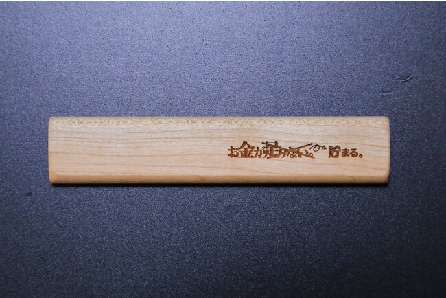 映画「お金が足りない。」はカリモク家具が社会課題の解決を実現するため、取り組んでいる廃棄物削減とCO2削減の一環として、家具制作において、板材から部材を切り出す際、家具に使用されなかった端材を使ったノベルティ作りに共感した映画「お金が足りない。」プロデューサー陣は端材を活用した映画「お金が足りない。」オリジナルマグネットバーを製作依頼し、毎月冷蔵庫に家計が一目でわかるメモなど貼ることで、一般の家庭において、家計の見直しが意識しやすくなる環境をご提供できればと考えています。