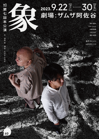 ±0第七回本公演『象』が2023年9月22日 (金) 〜2023年9月30日 (土)にザムザ阿佐谷(東京都杉並区阿佐谷北2丁目12-21 ラピュタビル B1F)にて上演されます。 チケットはカンフェティ(運営:ロングランプランニング株式会社、東京都新宿区、代表取締役:榑松 大剛)にて発売中です。
