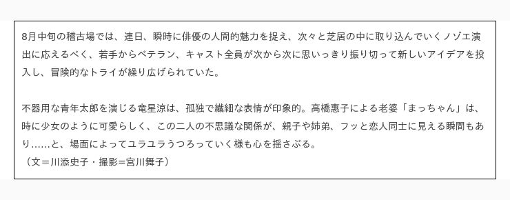 ノゾエ征爾 家納ジュンコ 山田真歩 菅原永二 高橋惠子