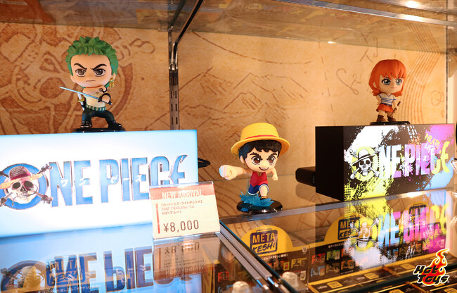 ホットトイズのデフォルメフィギュア「コスベイビー」ほか、フィギュアから手ごろなステーショナリーまで、バラエティ豊かなオリジナルグッズを販売。また、オンラインにて好評予約受付中の、ルフィとゾロのホットトイズ製1/6スケールフィギュアの貴重なプロトタイプも展示中です!