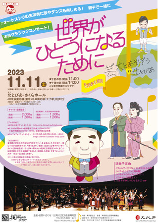 (公財)北区文化振興財団主催、芸大とあそぼうin北とぴあ「空想お札物語『世界がひとつになるために』」が2023年11月11日 (土)に北とぴあさくらホール(東京都北区王子1-11-1)にて開催されます。 チケットはカンフェティ(運営:ロングランプランニング株式会社、東京都新宿区、代表取締役:榑松 大剛)にて発売中です。
