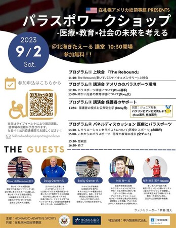 また、アメリカ領事館が招聘したアメリカパラスポーツの専門講師とともに「医療と教育とパラスポーツ」の環境について発信するイベントも開催します。パラスポーツ先進国といわれるアメリカの環境から多くの学びと気づきが得られるイベント構成です。