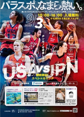 2023年9月3日(日)、北3条広場(アカプラ)にて東京パラリンピックで銀メダルと大会MVPを獲得した鳥海 連志選手、さらには東京大会でも活躍した金メダリスト・ローズ選手らが集まり、車いすバスケットボールの熱い戦いを繰り広げます! あわせて、9月1日は12:15から北海道庁にてトークショー、9月2日は11:00からワークショップを「きたえーる」で行います! パラスポーツの置かれる環境についてアメリカ選手の視点から話を聞くことができるだけでなく、パラリンピアンとの交流もできる貴重な機会、ぜひご参加ください。参加費は全て無料です。