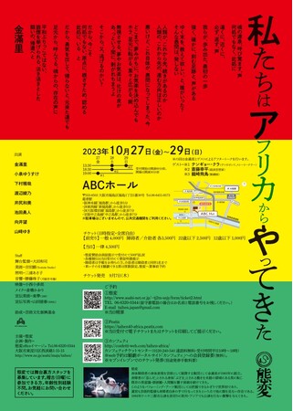 態変(代表:金滿里)主催、『私たちはアフリカからやってきた』が2023年10月27日 (金) 〜2023年10月29日 (日)にABCホール(大阪府大阪市福島区福島1丁目1番30号)にて上演されます。 チケットはカンフェティ(運営:ロングランプランニング株式会社、東京都新宿区、代表取締役:榑松 大剛)にて9月7日(木)10:00より発売開始です。