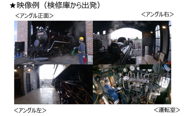 盛岡車両センターSL検修庫内での作業風景やGoPro3台で撮影した花巻駅〜遠野駅間の走行シーン、客車内の映像をお楽しみいただけます