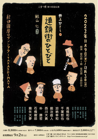 こまつ座第148回『連鎖街のひとびと』が2023年11月9日 (木) 〜2023年12月3日 (日)に紀伊國屋サザンシアターTAKASHIMAYA(東京都渋谷区千駄ヶ谷5-24-2 タカシマヤ タイムズスクエア南館7階)にて上演されます(全国ツアー公演あり)。この度、演出家とキャストによるコメントが公開されました。 チケットはカンフェティ(運営:ロングランプランニング株式会社、東京都新宿区、代表取締役:榑松 大剛)にて発売中です。