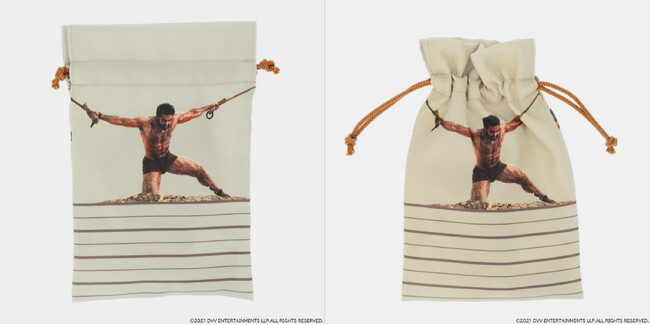 巾着の紐を引っ張ることで、虎と対峙したビームが吊られているロープを支えているような気持ちになれるアイテムです。