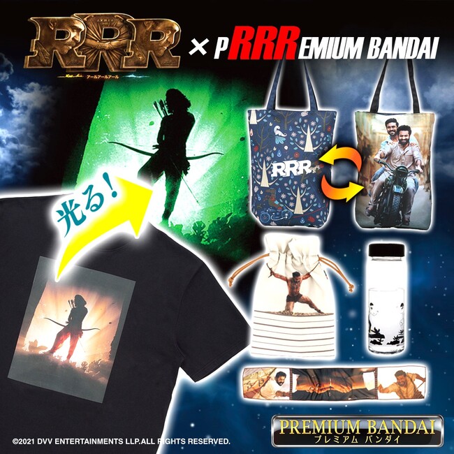 光る!リバーシブル!シーン再現!映画『RRR』の光るTシャツやリバーシブルトートバッグなど、P“RRR”EMIUM BANDAI(プレミアムバンダイ)コラボ第二弾が登場!!