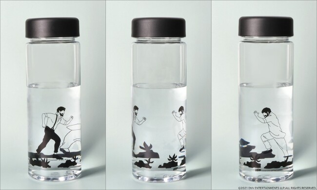 ボトルに水を入れると、ビームとラーマが川の底を歩いているように見えるデザインです。