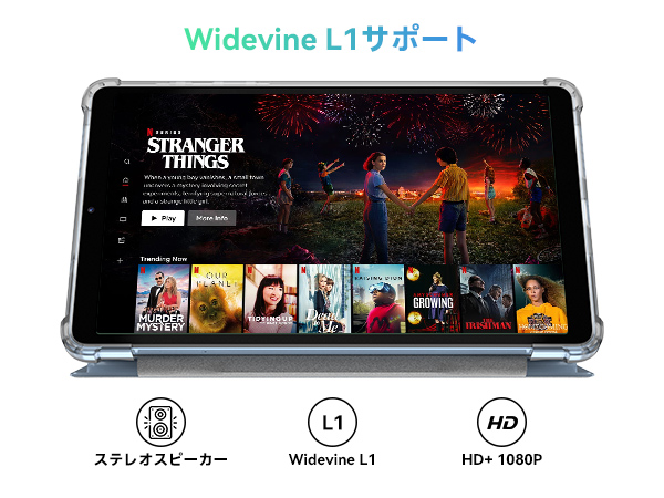 Widevine L1をサポートしており、Amazon Prime Video、TVer、Disney+、Hulu、YouTubeなどの動画サービスにおいて高画質設定の映像を楽しめます。