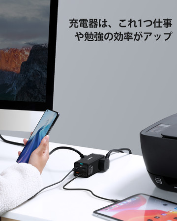 これにより例えばデスクトップにおいては従来ではモニターやPCは電源タップから、スマートフォンやタブレットはUSB充電器から、とそれぞれ別の電源を必要として雑然としていた環境から、PowerCombo一つに電源を集約するなど、今まで以上にスマートなデスクトップを演出することが可能に。
