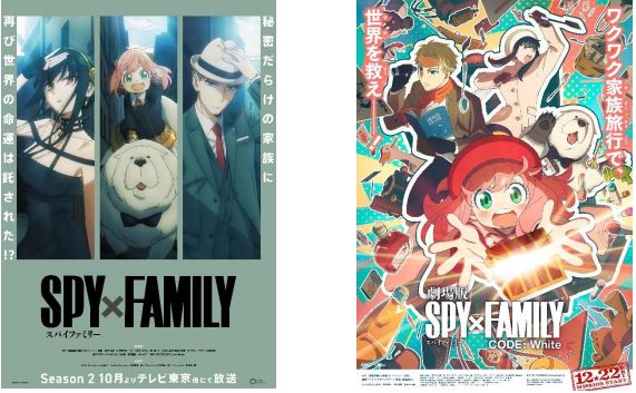 2022 年4 月よりSeason 1 の放送が始まった本作は、原作人気を受けての期待に応えるべく、WIT STUDIO とCloverWorks による2 社共同制作という異例の体制が採られた。古橋一浩監督をはじめとするアニメ界屈指のスタッフ陣、江口拓也、種崎敦美、早見沙織ら人気キャスト陣に加え、主題歌を第1 クールではOfficial 髭男dism、星野源が、第2 クールではBUMP OF CHICKEN、yama が担当したことも話題となり、2022 年の大ヒットアニメとして注目を集めた。さらに今年は10 月よりテレビ東京他にて待望のSeason 2 が放送されることに加え、12 月 22 日(金)には『SPY×FAMILY』史上初の映画化であり、完全新作オリジナルエピソードで描かれる『劇場版 SPY×FAMILY CODE:White』が公開となります。