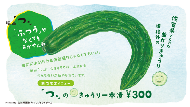 「失敗してもいい」「世間に決められた価値通りじゃなくてもいい」という想いが映画にも曲がりきゅうりの一本漬けにも込められています。今回の一本漬けは、11/10よりイオンシネマ佐賀大和での「つ。」上映決定を記念して、映画のコンセプトを体感して頂くべく企画されました。