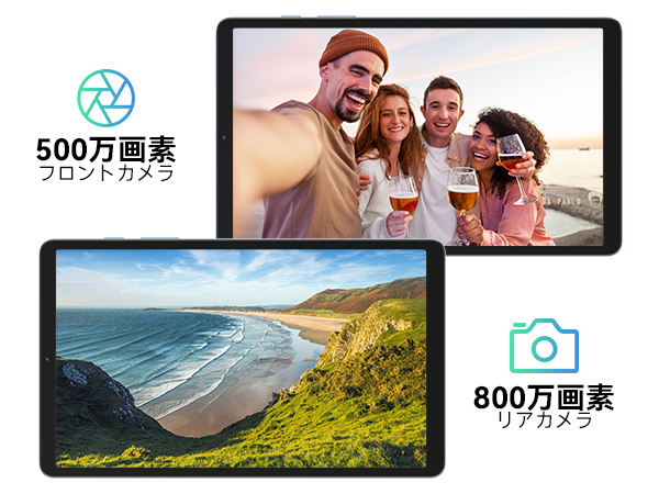 前面には5メガピクセルのフロントカメラを、背面には8メガピクセルのリアカメラを内蔵しており、風景撮影からテレワーク、オンライン授業などの用途にも活用できます。