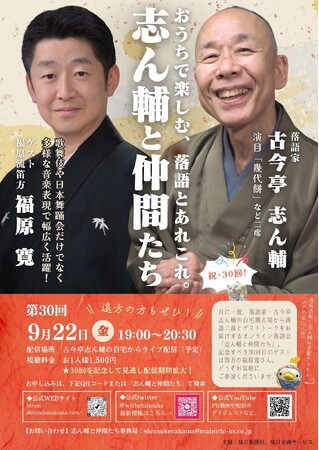 開催30回記念!見逃し配信期間拡大!毎日新聞主催オンライン落語会「志ん輔と仲間たち」