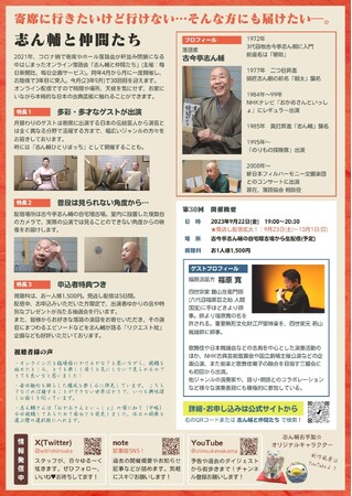 <出演>古今亭志ん輔、福原寛さん(ゲスト・福原流笛方)