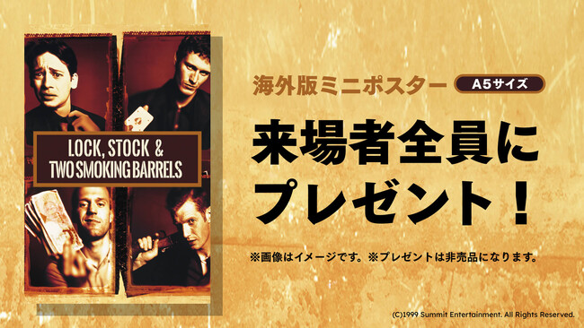 映画『ロック、ストック&トゥー・スモーキング・バレルズ』の海外版ミニポスターを全国の上映劇場にて、来場者の方全員に配布いたします。