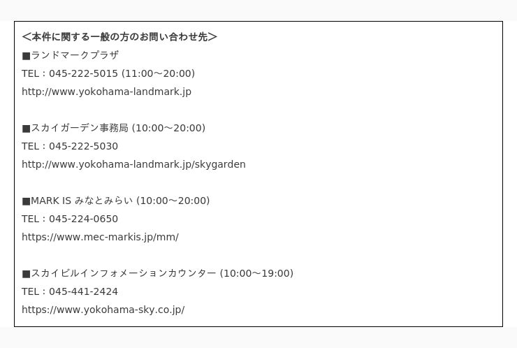 (運営:三菱地所プロパティマネジメント株式会社・株式会社横浜スカイビル)