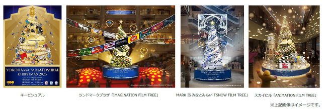 ランドマークプラザ1階のサカタのタネ ガーデンスクエアに登場するのは、メインツリー「IMAGINATION FILM TREE」。今年100周年を迎えるワーナー・ブラザースの歴代の物語のフィルムがツリーを包み、各施設のツリーへストーリーを紡ぎ広がっていきます。MARK IS みなとみらい 1階のグランドガレリアには世界中で愛され熱狂的なファンも多い映画「ハリー・ポッター」シリーズにインスパイアされた「SNOW FILM TREE」。スカイビルでは、「トムとジェリー」と「ルーニー・テューンズ」をモチーフにした「ANIMATION FILM TREE」が登場します。