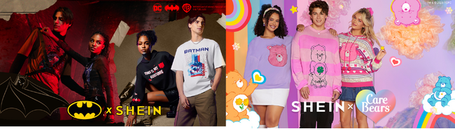 「SHEIN」はこれまでも、世界中に愛される人気キャラクターとのコラボレーションを数多く実施してきており、すべてのコラボレーションにおいて、「SHEIN」ならではの幅広い商品展開により、キャラクターの世界観を体現したアイテムを豊富に展開してきました。今回販売を開始したアメリカン・コミック界のヒーローを主人公とした『BATMAN』とのコラボレーションでは、ダークなタッチでありながら、大胆にデザインされたアイテムにより、モード感の溢れるスタイリッシュなファッション体験をお届けします。また、レトロな可愛さが魅力で幅広い世代から愛され続けている『Care Bears』とのコラボレーションでは、カラフルでポップな世界観をトレンドアイテムにて落とし込み、メンズ、レディース、キッズをはじめとして、ユニセックスアイテムや小物、ホーム用品など多種多様で充実したアイテムを展開しています。ぜひこの機会に、お気に入りのキャラクターとのコラボレーションアイテムを身につけて、これまでにないファッション体験を楽しんでみてはいかがでしょうか。