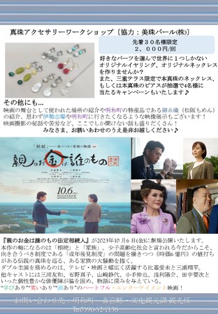 10月6日(金)から伊勢志摩を舞台にした映画「親のお金は誰のもの~法定相続人~」が公開、そして三重県明和町が今年で町制65周年迎えたことを記念して、東京日本橋三重テラスにてイベ ントを開催いたします。