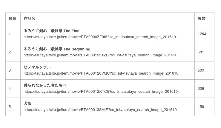 ■TSUTAYA映画ファン賞 TOP10ランクイン作品情報■