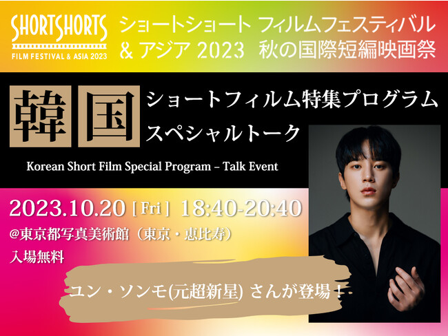 米国アカデミー賞公認、アジア最大級の国際短編映画祭ショートショートフィルムフェスティバル & アジア(SSFF & ASIA)が開催している秋の国際短編映画祭、韓国特集プログラムにおいて、スペシャルゲストとして、元超新星のユン・ソンモさんが登場することが決定いたしました。 URL https://shortshorts.org/2023autumn/program/program_cat/korea/