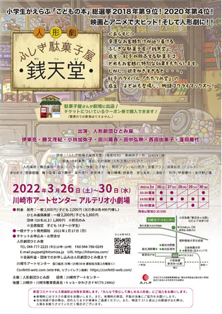 人形劇団ひとみ座 人形劇「ふしぎ駄菓子屋銭天堂」が2022年3月26日(土)〜3月30日(水)に川崎市アートセンター・アルテリオ小劇場(神奈川県川崎市)にて上演されます。チケットはカンフェティ(運営:ロングランプランニング株式会社、東京都新宿区、代表取締役:榑松 大剛)にて発売中です。