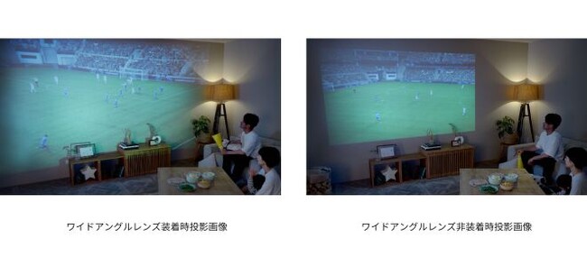 レンズの装着には簡単に着脱可能なレンズアタッチメントを使用し、ワイドアングルレンズとNX1とのずれを防ぎます。また、投影距離が短い場所でも大画面での投影が可能となり、設置場所の自由度がさらに高まります。