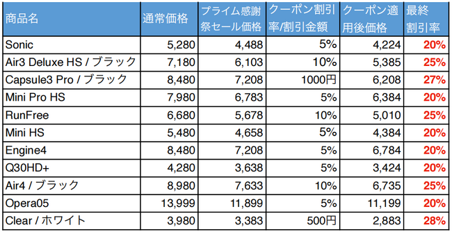 発売にあわせ、10月14日(土)から2日間開催される「Amazonプライム感謝祭」にて、 弊社製品の特別セールを実施します。Clear/ホワイトモデルも28%オフと大変お求めやす い価格で提供致しますので、ぜひご利用ください。