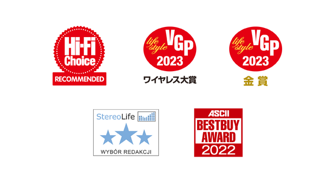 ZE8000は、これまでに国内最大級を誇るオーディオビジュアルアワード『VGP2023 WINTER』でワイヤレス大賞や金賞のほか、『ASCII BESTBUY AWARD 2022』では編集部特別賞を受賞いたしました。また、海外での評価も高く、イギリスの有名オーディオ専門誌「Hi-Fi Choice」からは、一定の高い基準や性能を満たしている製品に贈られる「Hi-Fi Choice RECOMMENDED」にも選ばれております。