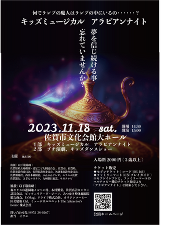 nano(佐賀市中央本町9-2SKセントラルマンション1階:代表岩榮恭平)は、2023年11月18日佐賀市文化会館大ホールにて、4歳〜18歳の子供達によるミュージカル公演「キッズミュージカル アラビアンナイト」を開催します。 ミュージカルのテーマである「諦めずに信じ続ければ、夢はきっとかなう」というメッセージを、舞台を創造する子供達と来場者に伝えたいと考えています。 そこで、多くの方々にご来場いただく為に、さぎんコネクト株式会社のクラウドファンディングサイト 「YOKATO!」(https://yokato.sgcnct.co.jp/products/detail/29)より、クラウドファンディングを実施しました。 (10月10日に終了) クラウドファンディングは、スタートから30分で初期目標を達成し、最終的には達成率400%、120万円の資金を集めることができました。