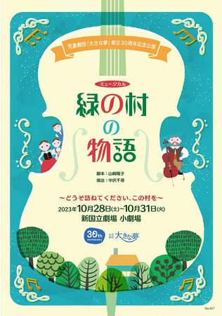 劇団BDP制作、児童劇団「大きな夢」創立30周年記念公演 ミュージカル「緑の村の物語」が2023年10月28日 (土) 〜2023年10月31日 (火)に新国立劇場 小劇場(東京都渋谷区本町1丁目1番1号)にて上演されます。 チケットはカンフェティ(運営:ロングランプランニング株式会社、東京都新宿区、代表取締役:榑松 大剛)にて発売中です。