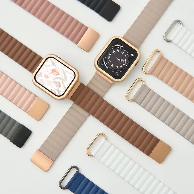 1.「ぴったりライン」マグネット式PUレザーアップルウォッチバンド