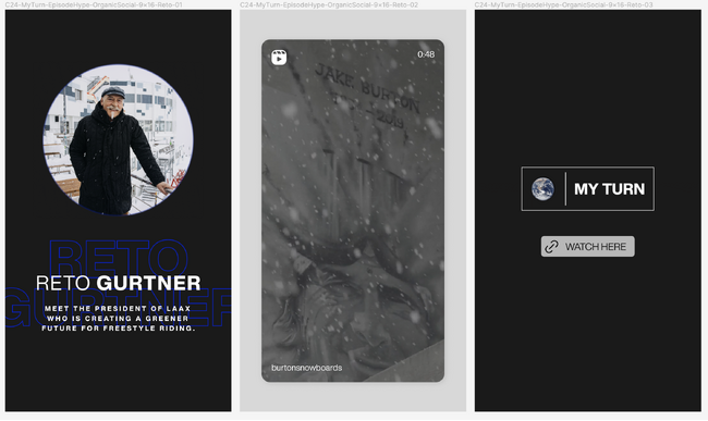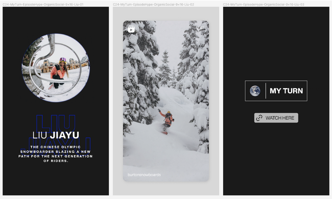 「MY TURN」の5つのエピソードには、世界中から選ばれたアスリートやストーリーによって構成されています。ディマ・ルチキンは、13歳の天才スノーボーダーで、ウクライナ人です。戦争によって故郷を失った難民として、オーストリアのインスブルックで家族とともに暮らしています。リウ・ジアウは、中国に初めてスノーボード競技のオリンピックメダルを持ち帰りました。これは、カンフーから始まった彼女のスノーボード人生における、思いがけない旅のハイライトでした。スイスLAAXリゾートを経営するレト・グルトナー氏は、世界中のリゾートにおけるサステナビリティの基準を推進しています。人気のフリースタイラーであるゼブ・パウエルは、スポーツが進むべき未来そのものの変革をリードしています。そして、Burton の Culture Shifters イベントにおいて、マセケラはスノーボードコミュニティをより多様で包括的なものにするために、その方法についての議論をモデレートしています。