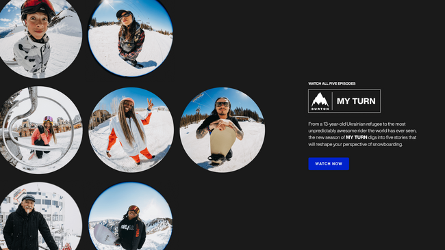 13歳のウクライナ難民に始まり、世界がこれまで見てきた中で最も予測不可能なスノーボーダー、そして、より包括的なスノーボードコミュニティを構築する探求に至るまで、Burtonは、「MY TURN」というムービーを通して、スノーボードというスポーツ及びカルチャーを再構築する新たなコミュニティのあり方を提案していきます。