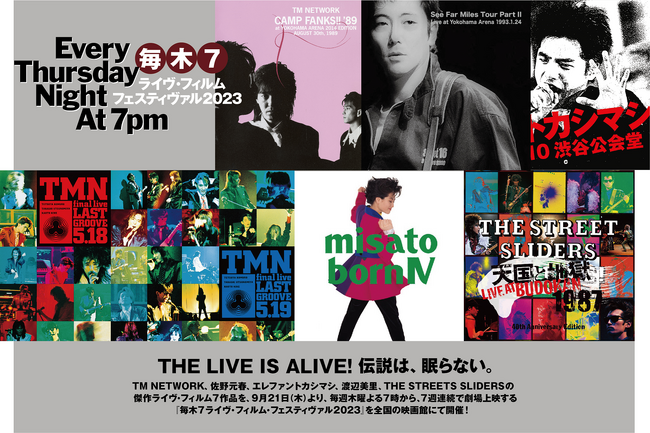2023年、創立45周年の節目を迎えたEPICレーベル。ライヴに拘ったEPICレーベルからこれまで発表された80〜90年代の珠玉のライヴ・フィルム7作品を全国19都市24カ所の映画館にて、9月21日(木)より毎週木曜よる7時から7週連続で一夜限定上映するイベント『EPICレコード創立45周年記念 毎木7ライヴ・フィルム・フェスティヴァル2023 -THE LIVE IS ALIVE!-』もいよいよ最終回を迎えます。